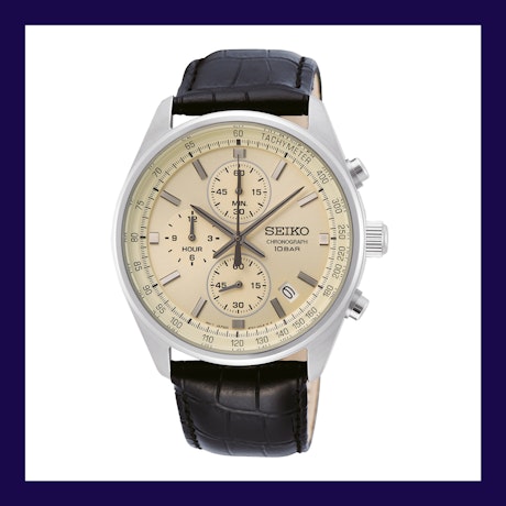 Seiko Chronograph 100m WR Watch with Leather Strap, $299.