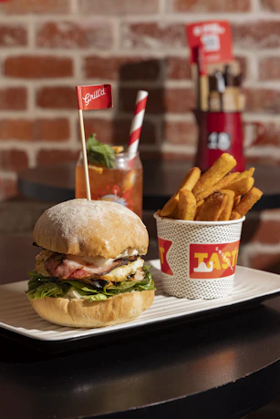 The Full Stack - Any burger, served with snack chips and your choice of a shake or a non-alcoholic drink. Available every day, for lunch and dinner.