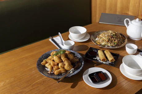 Lee's Feast - Choose two deep-fried vegetable spring rolls or two steamed prawn and coriander spring rolls for entrée, followed by Sweet & Sour Pork or Salt & Pepper Chicken with special fried rice, served with Chinese tea. Available for lunch and dinner, weekdays.