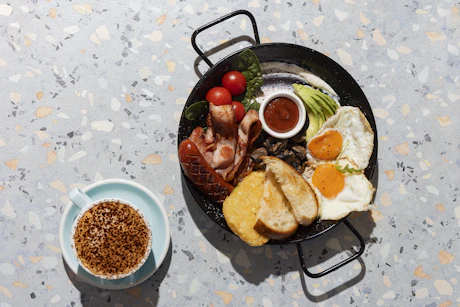 Durk’s Big Breakfast - served with a small coffee (choice of cappuccino, flat white, or latte). Available all-day on weekdays.